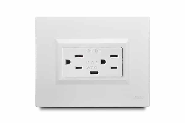 Tomacorriente inteligente controlado de manera manual o remota desde cualquier parte del mundo para el control del encendido y apagado individual de cada salida del tomacorriente y puerto USB C mediante el uso de la APP Veto Smart.